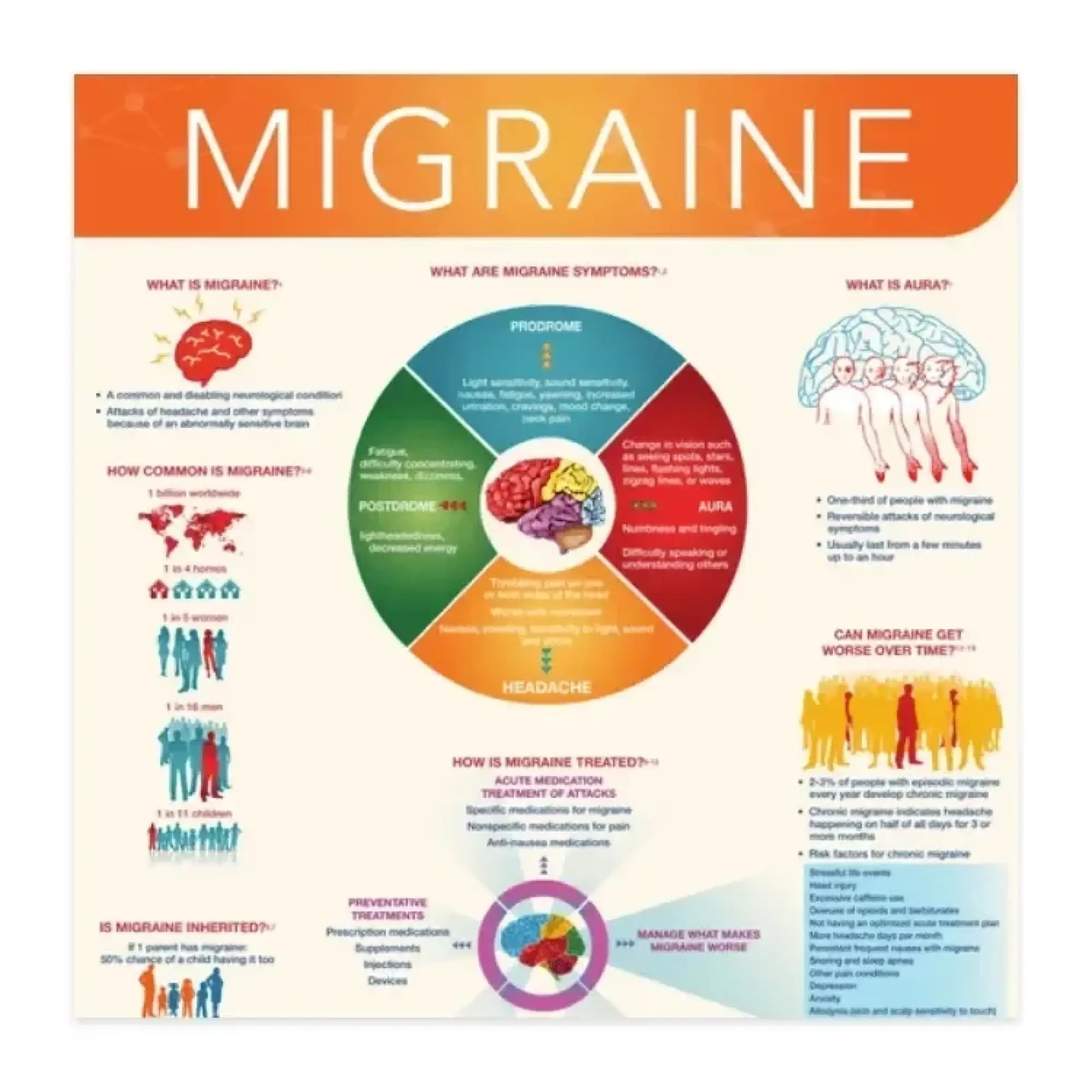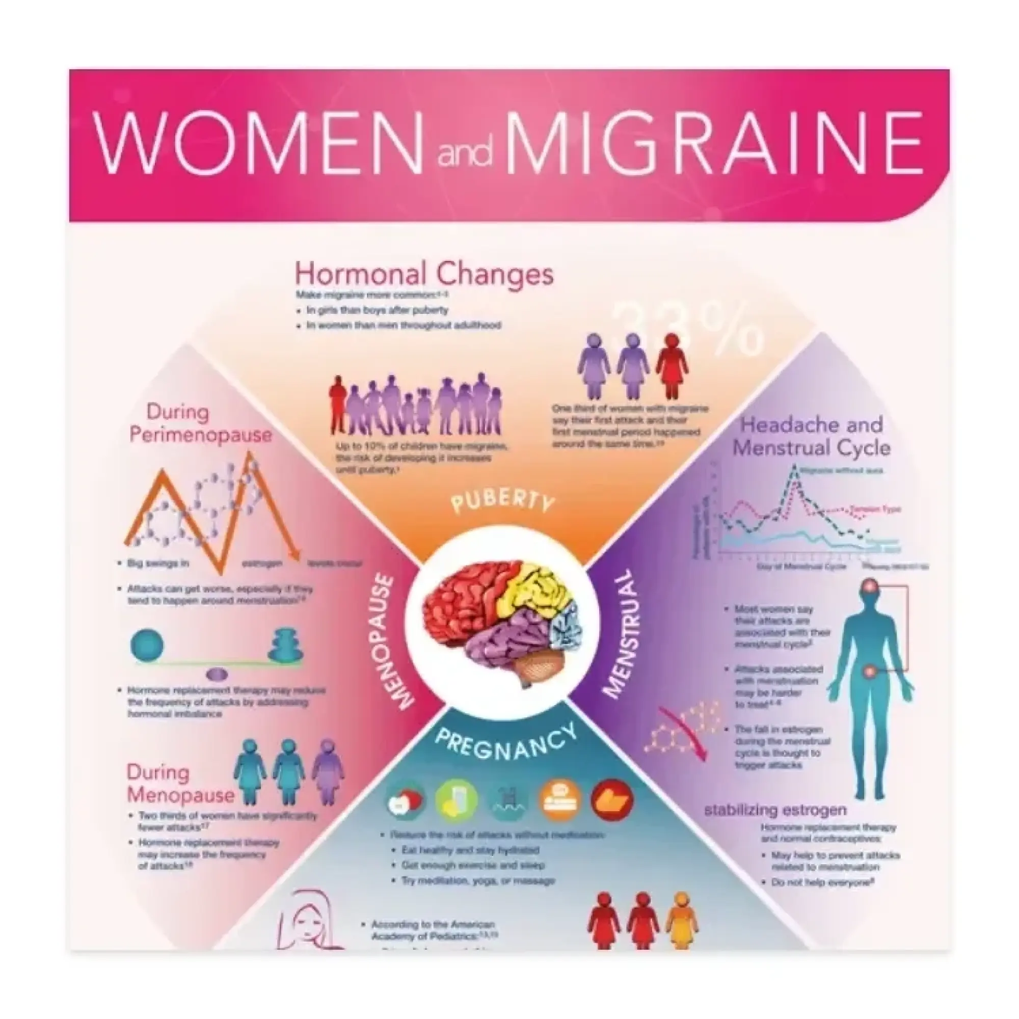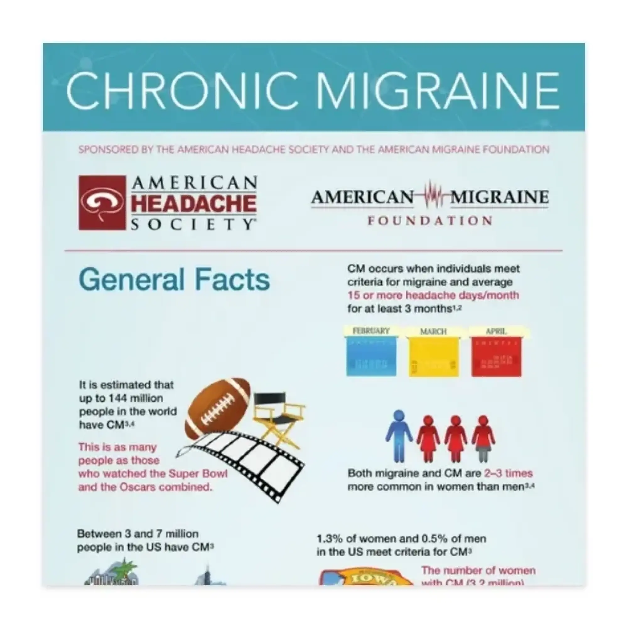 Through our mission of improving the care and lives of people living with headache disorders, AHS is committed to providing resources for patients and the general public to learn more about the field of Headache Medicine. From chronic migraine to pediatric migraine, these downloadable infographics are designed to provide patients with current, easy-to-digest information that focus on informing and empowering them to learn more about various headache disorders.